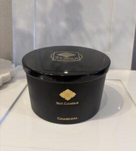 <Materials> ・Soy wax, Pure essential oil, Charcoal. Glass jar, Stainless Lid, Stainless candle cutter